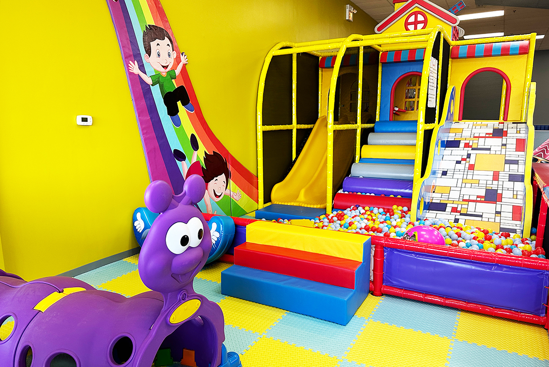 Indoor play zones often have various slides of different heights and designs. Slides are not only loads of fun but also help children build courage and balance.